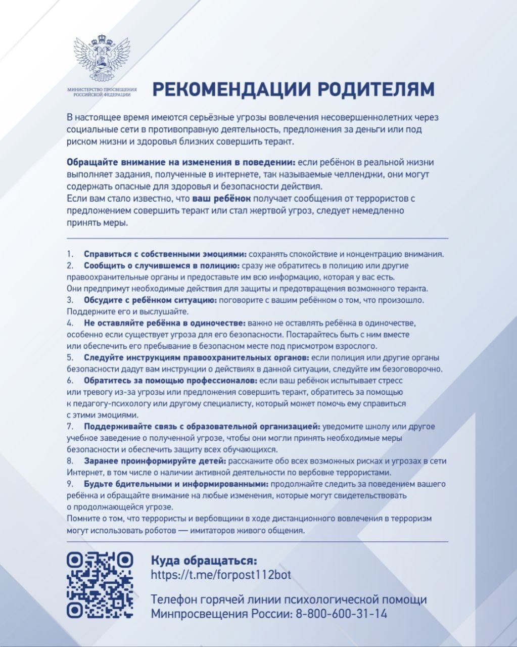 Рекомендации родителям по противодействию вовлечения несовершеннолетних в противоправную деятельность
