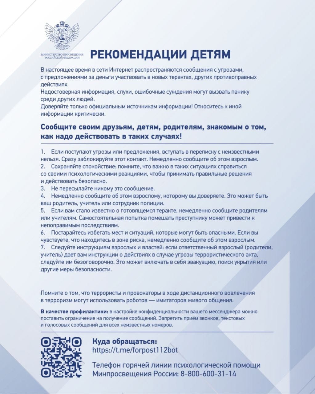Рекомендации детям по противодействию вовлечения несовершеннолетних в противоправную деятельность